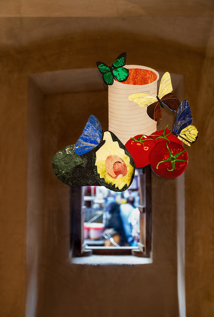 99 Butterflies, a deeply personal work by Asad, explores the experience of displacement through intricate stone butterflies, each one a symbol of resilience and renewal. Inspired by the words of Palestinian poet Mahmoud Darwish – “Where will we go after the last frontiers? Where will the birds fly after the last sky?”– the installation gives form to the search for belonging, mirroring the fate of those uprooted by conflict.