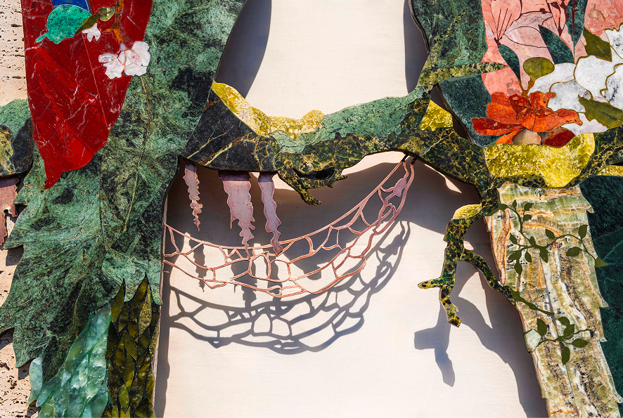99 Butterflies, a deeply personal work by Asad, explores the experience of displacement through intricate stone butterflies, each one a symbol of resilience and renewal. Inspired by the words of Palestinian poet Mahmoud Darwish – “Where will we go after the last frontiers? Where will the birds fly after the last sky?”– the installation gives form to the search for belonging, mirroring the fate of those uprooted by conflict.